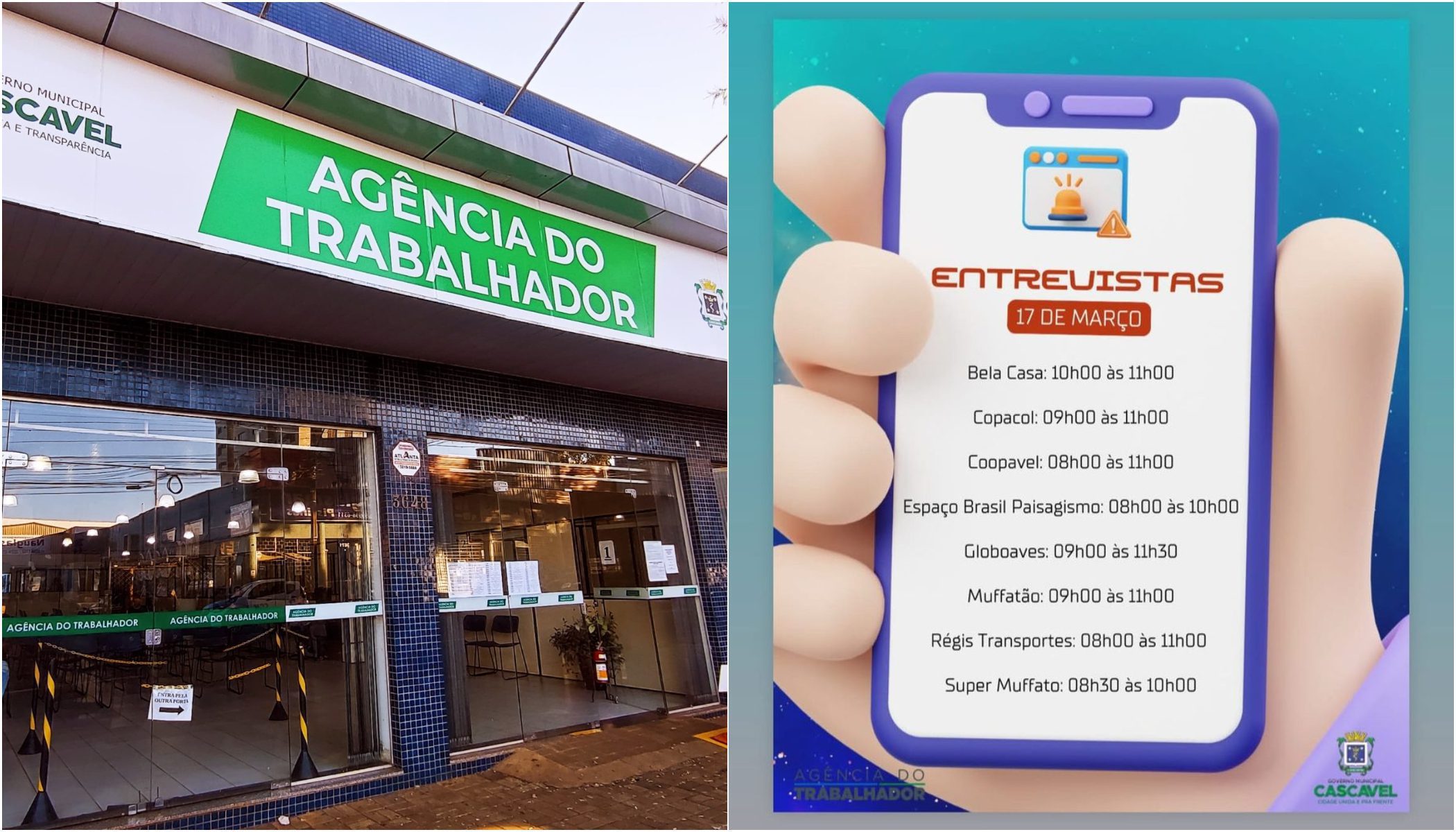 Os interessados devem comparecer à Agência do Trabalhador de Cascavel munidos de um documento com foto. A agência tem se mostrado um importante canal de intermediação entre empresas e trabalhadores, contribuindo para a redução do desemprego e a movimentação da economia local.