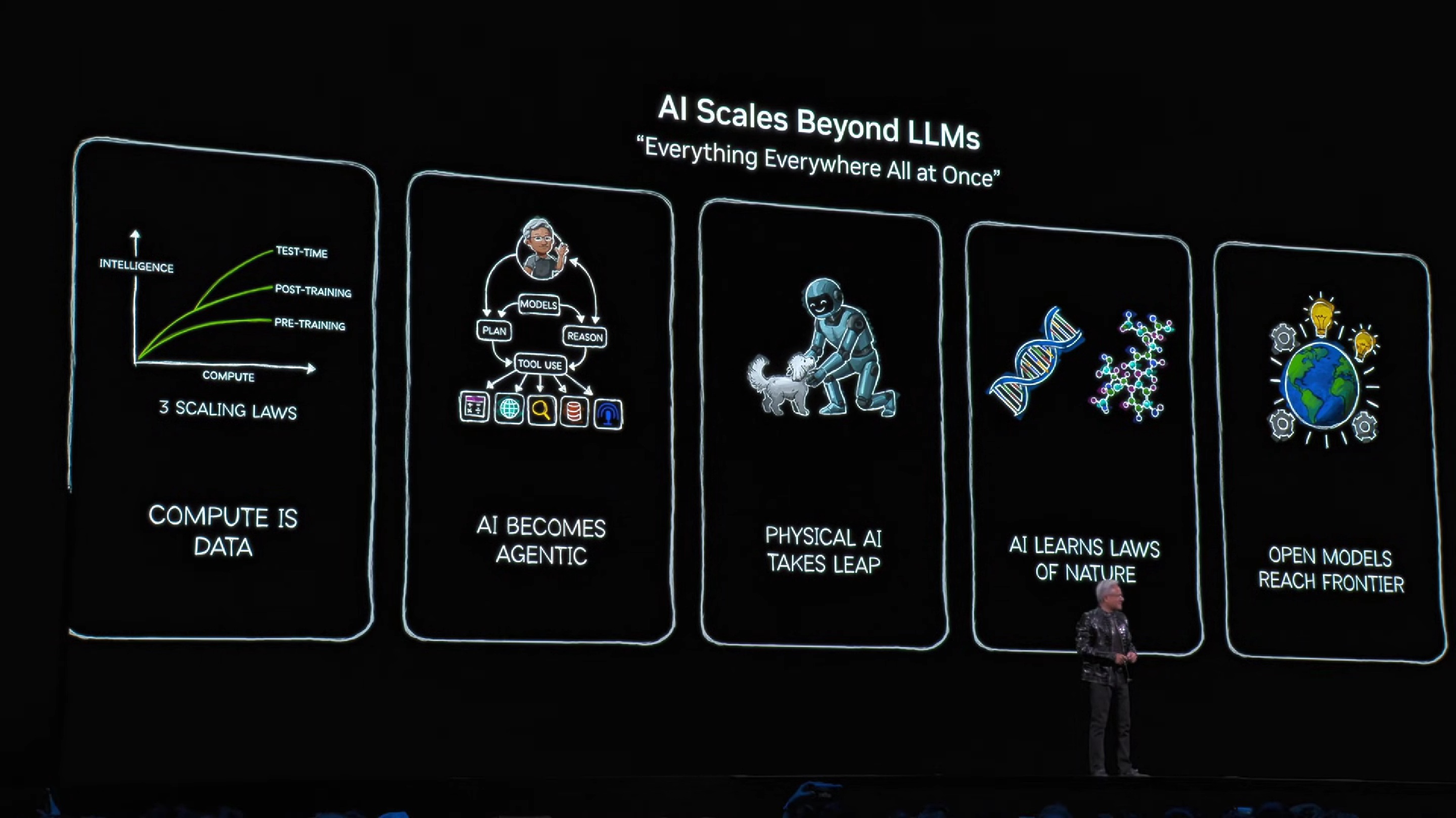 Os desenvolvimentos nos últimos dois anos centraram-se nos modelos inteligentes, com os LLM e os sistemas de agentes a chegar ao mercado para resolverem problemas muito importantes, mas há mais tipos de IA e o CEO da Nvidia focou grande parte da sua apresentação na IA física “que entende as lei da natureza, que interage com o mundo”, e a chegada de modelos abertos foi um dos grandes marcos dos últimos meses.