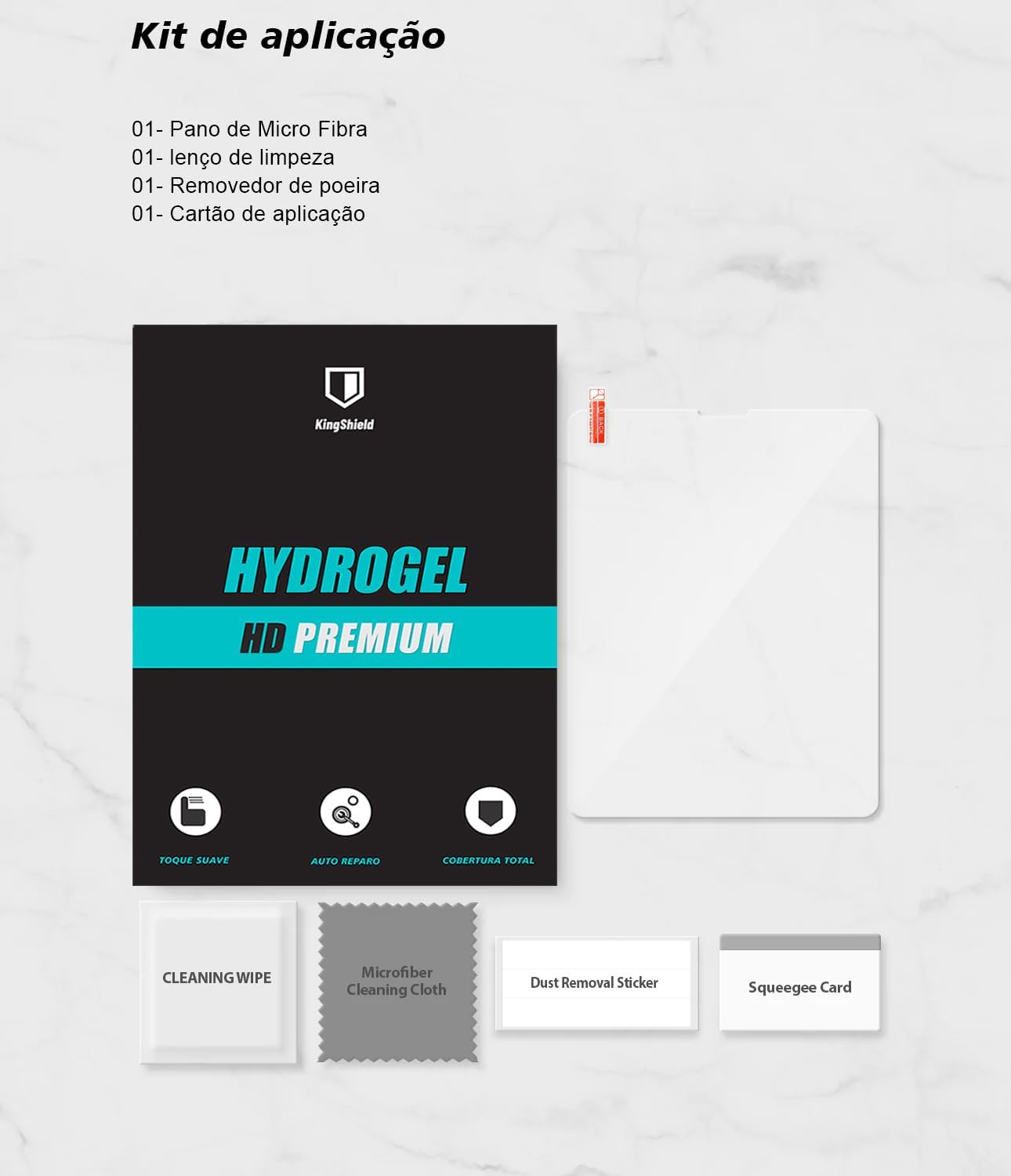 O hidrogel absorve perfeitamente os impactos que é distribuído por toda a superfície. Uma vantagem adicional é o recurso de auto-reparação de arranhões finos e não compromete o toque da tela.