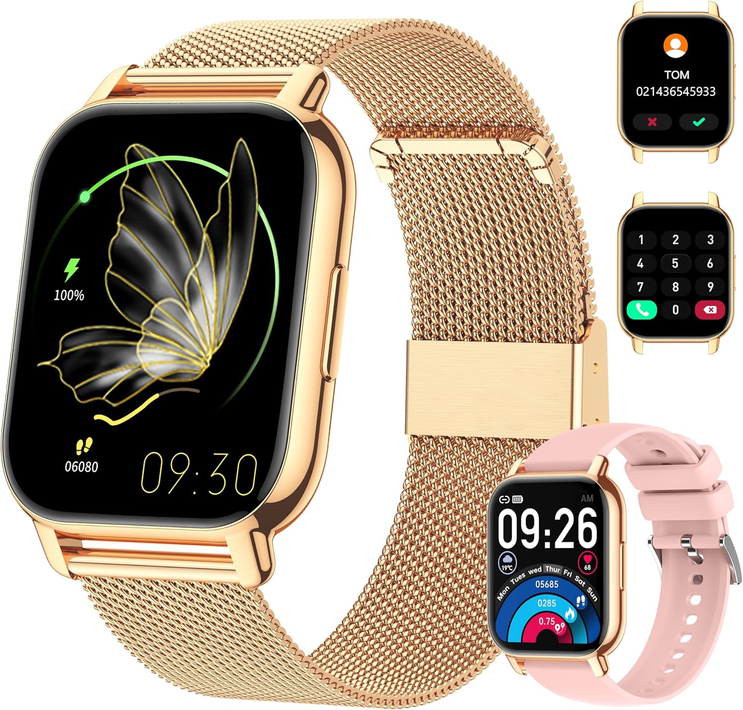 Relogio Smartwatch Feminino(Fazer/Atender Chamada),1.85”Smart Watch Com controle de voz AI,SpO2/monitor de freqüência cardíaca Fitness Watch Bluetooth para iPhone Android Phone