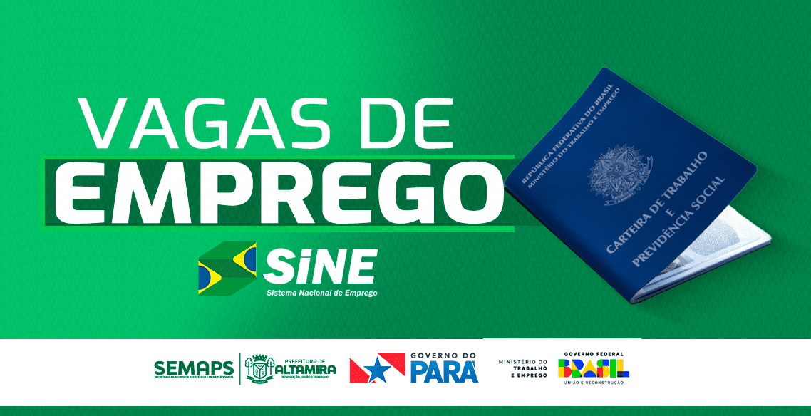 O Sistema Nacional de Emprego (Sine) de Altamira está com 44 vagas de emprego disponíveis nesta segunda-feira, 18 de agosto.