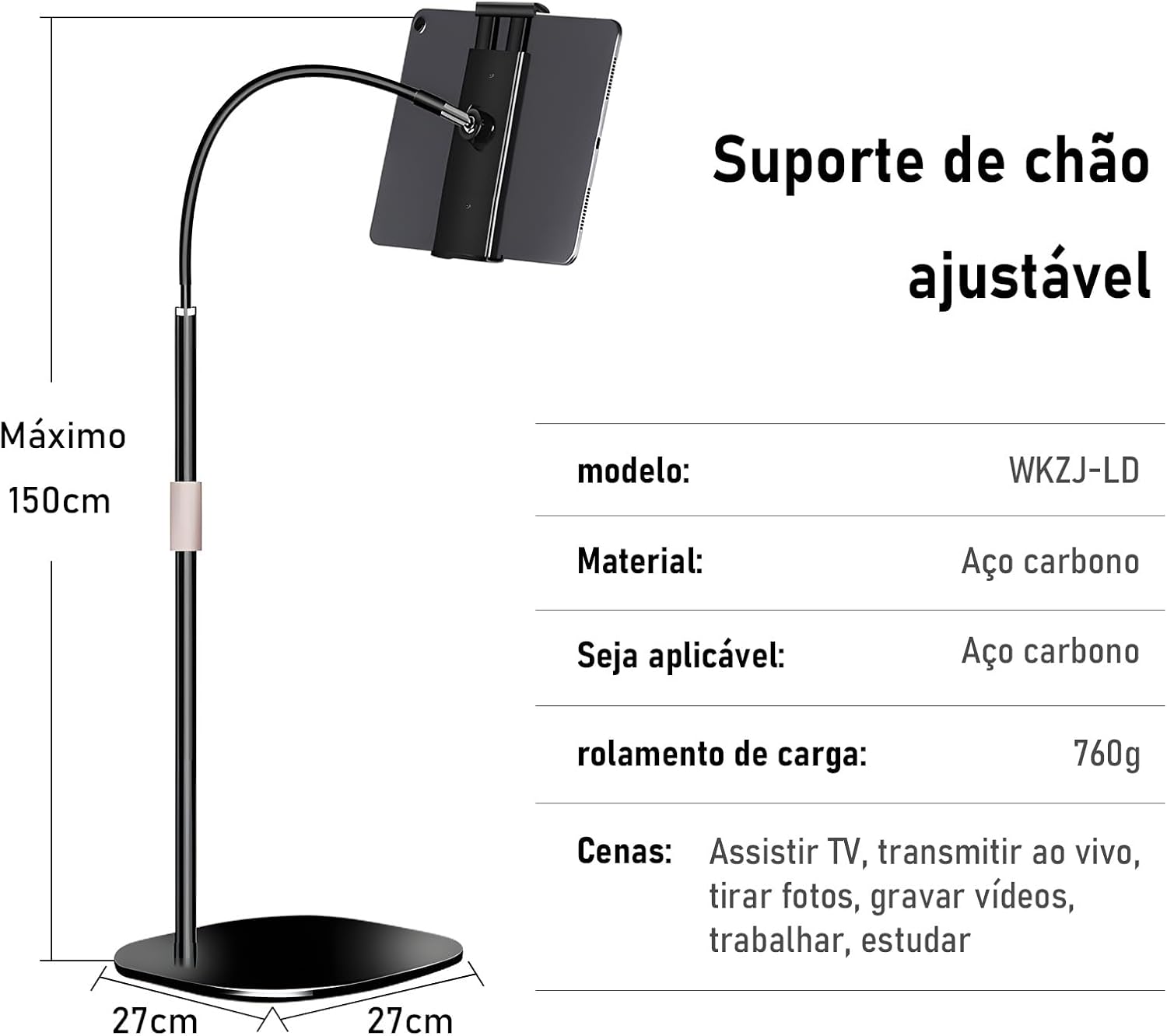 Suporte de Chão para Celular e Tablet, Ajuste Universal de 360 Graus, Adequado para Uso com Celulares/Tablets/Kindle de Tela de 4 a 11 Polegadas
