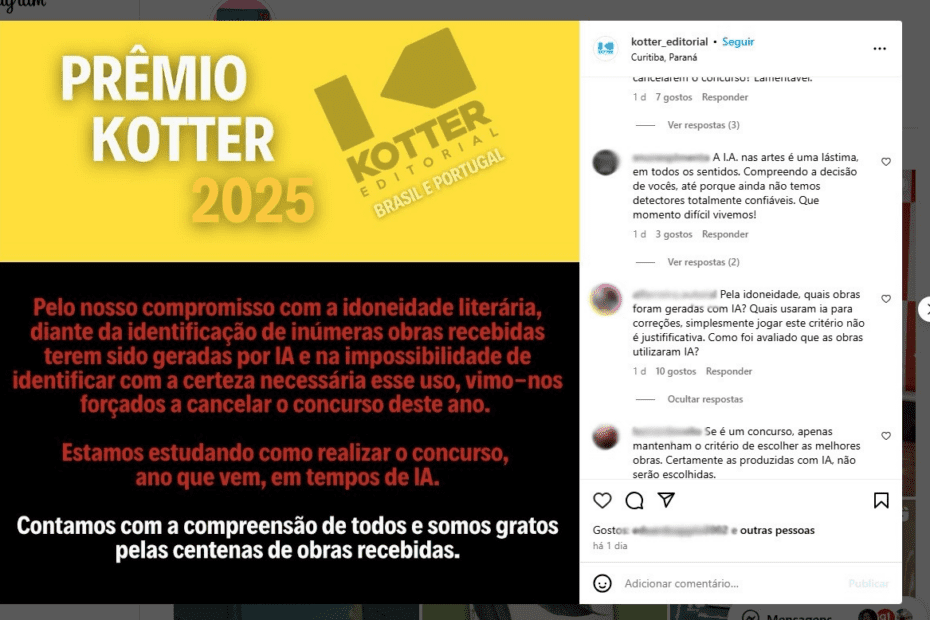 Editora de Curitiba cancela prêmio literário após inscrições de obras feitas por Inteligência Artificial | ParanáNotícias
