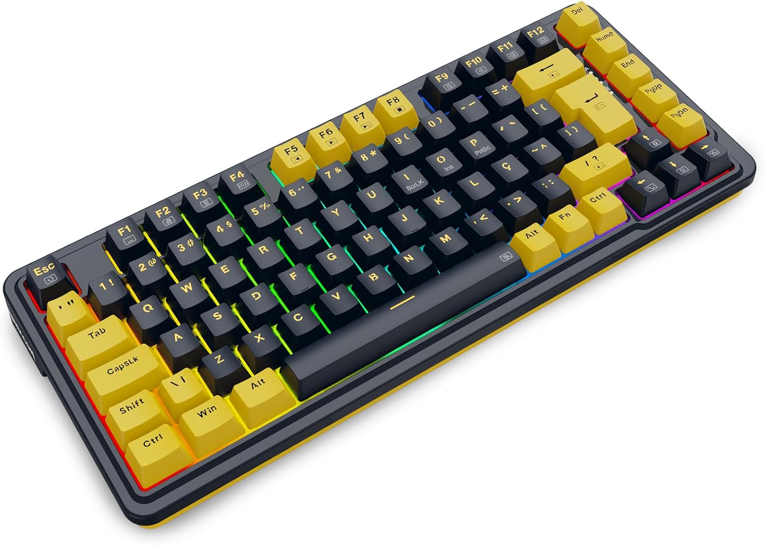 Características: – Teclado no formato 75% – Iluminação RGB Redragon Chroma Mk.II individual – Keycaps doubleshot de alta qualidade – Layout ABNT2 feito especialmente para o mercado brasileiro – Gasket Mount para uma digitação mais suave – Foam mod entre a PCB e plate do teclado e também na base do teclado – Hotswap Pro para maior compatibilidade com diferentes switchs Especificações: Switches: Redragon Melt Gold (linear) Acionamento: Mecânico Hot Swap Pro com suporte para switch de 5 pinos Formato: 75% Layout: ABNT2 Conectividade: USB Software: Sim Ajuste de altura: Sim com 3 níveis Iluminação: RGB Redragon Chroma Mk.II Rollover: N-Key Rollover Cabo removível: Sim, com conector USB-C Comprimento do cabo: 1.5m aproximadamente Keycaps: ABS Doubleshot Peso Bruto(g): 1350 Peso Líquido(g): 1240 Dimensões da embalagem. 380mm(L) X 180mm(P) X 50mm(A)